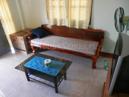 1-спальный дом на Банграке с оборудованной кухней, террасой и маленькой террасой для сушки белья, гостиной, местом для парковки и ухоженной территорией за ฿11 000 в месяц. До моря 200 метров.