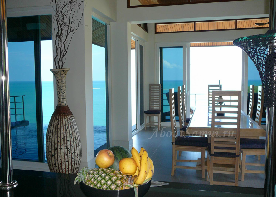 5-этажная 4-спальная вилла с собственной охраняемой территорией, джакузи, кондиционерами, телефоном, сейфом, TV, DVD, Wifi, бассейном с эффектом бесконечности, видом на море, 2-мя большими холодильниками, плитой, микроволновой печью, кофемашиной, посудомоечной машиной и полным набором посуды за ฿300 000 в месяц . Вмещает до 8 человек, ежедневная уборка включена в стоимость.