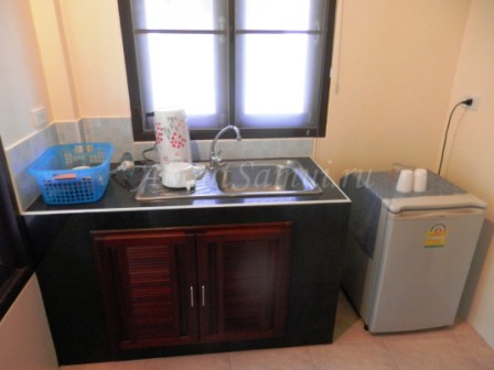 1-спальный дом с террасой и кухней за ฿12 000 в месяц. До моря 500 метров. Пляж некупабельный. До купабельного Ламаи или Ники бич 15-20 минут на байке.