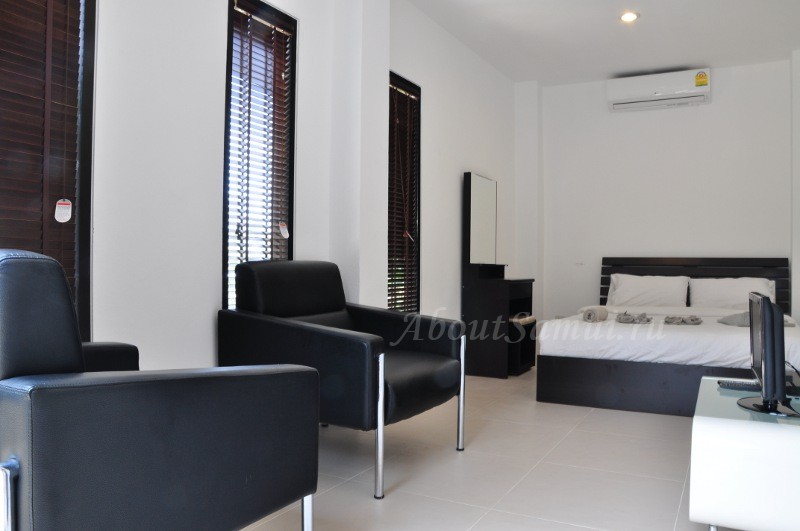 1-спальные апартаменты с оборудованной кухней, общим бассейном, маленькой гостиной и террасой за ฿13 000 в месяц. До моря 2,6 км.